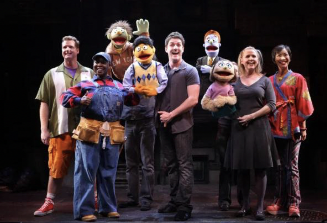 Tony Award winning Best Musical of 2004, Avenue Q is not Sesame Street! But like Sesame Street, most of the puppets are hand puppets along with two rod puppets.