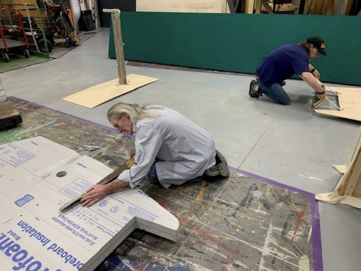 About a week before I was gettin’ ready to build the head, our former set builder, Buzz McCulloch, was at the Reif. I showed him my plans for the wizard head and mentioned I was makin’ the head out of foam. As soon as he heard that, he asked me what time he could be there to help. He loves workin’ with foam and has created a lot of amazing set pieces usin’ foam, so it wasn’t too surprising when he asked to help. I let Buzz take the lead on the foam part of the head while I focused on the mechanics of makin’ the puppet work, and building the ginormous unit the puppet is attached to.