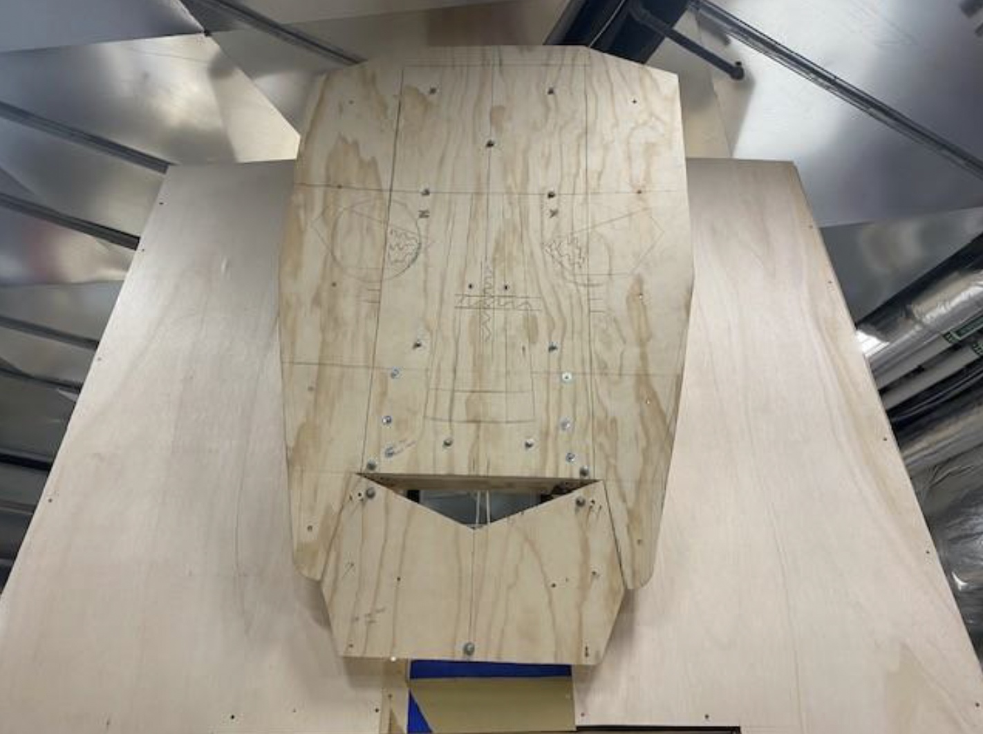 During our production meeting, the idea of the wizard head bein’ a giant puppet was brought up. That sounded fun and challenging! After a bit of research, I drew up some crude plans for a wizard head that is 4 feet wide and 7 feet tall – with a mouth that moves! I showed my plans to our local puppet expert, John Schroeder, for his advice. He said one alteration to make the mouth move better is all that is needed.