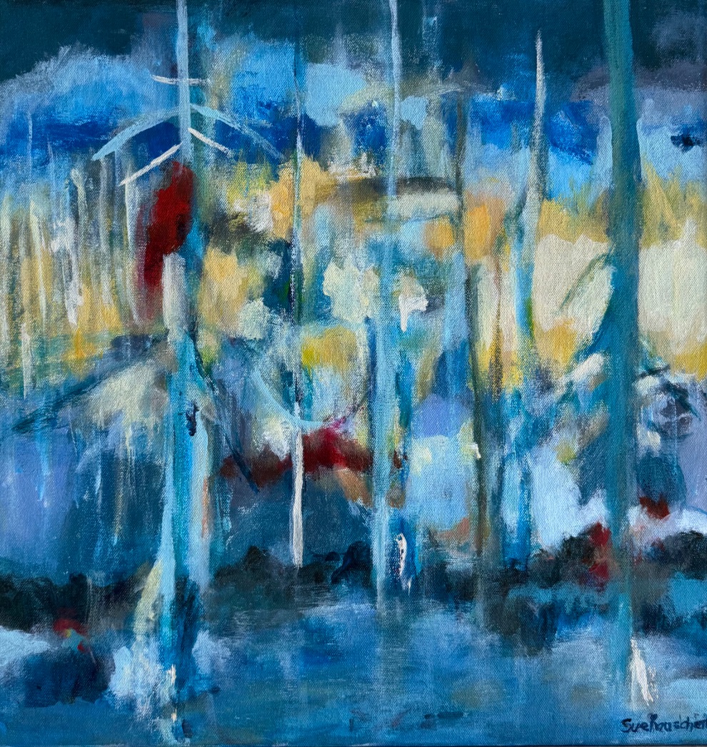 “The connection between animals, humans, and wilderness grew as a dominant theme in my painting. I do not attempt to depict nature’s reality but instead create abstract visual landscapes using shapes, colors, forms, and images. I try to discover and express visually the creative, inspirational power of the natural world that cannot be portrayed by words alone.”